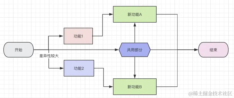 差异化的地方由功能版本控制,相同的地方共用,满足在不同场景下的横向扩展能力。