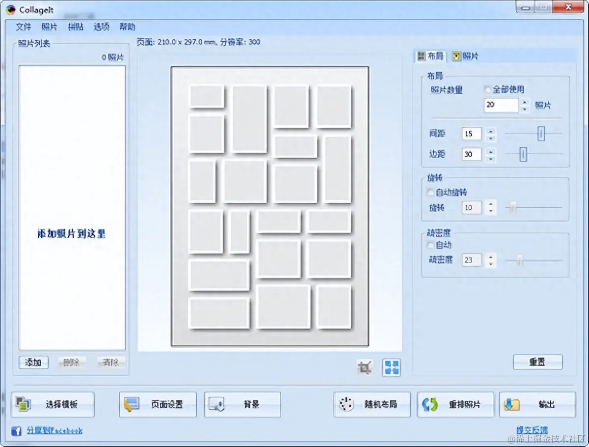 CollageIt是一款简单易用的图片拼贴制作工具,它可以让你在几秒钟内从多张照片中自动生成美观的图片拼贴。你可以选择不同的拼贴布局、背景颜色、边框样式和空白间距,也可以随时调整图片的位置、大小和旋转角度。它适合各种场合的图片拼贴软件,无论是展示旅行回忆、庆祝节日生日、还是制作个性化的贺卡和海报,都可以用它来快速创作出精美的图片拼贴。