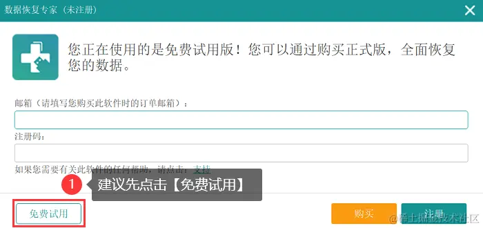 1.将需要进行数据恢复的u盘与电脑连接后再运行软件,如果你是第一次使用软件,建议先体验免费扫描的功能,点击【免费试用】即可;