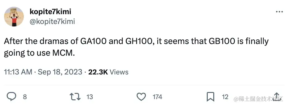 此外,kopite7kimi 还提到 Blackwell 架构 GPU GB100 采用了多芯片模块(MCM)设计。这表明英伟达将采用先进的封装技术,提供更大的灵活性,来为消费者定制芯片。