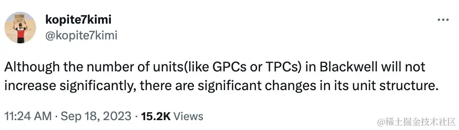 据外媒 videocardz 报道,kopite7kimi 基本认同这些信息,但他在个人推特上表示:「Blackwell 不会明显增加 GPC、TPC 等计算单元的数量,但单元结构可能会进行重大重组。」