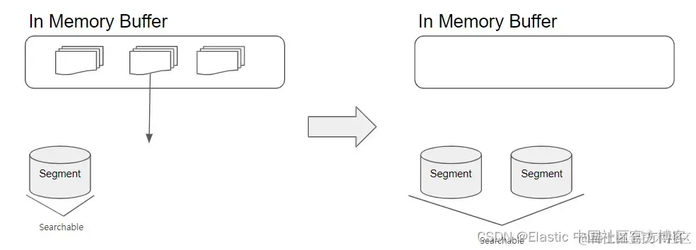 当收到文档索引请求时,Lucene 会为文档创建一个倒排索引并将其存储在内存缓冲区中。 当执行索引、更新或删除文档等操作时,Lucene 将这些更改保存在内存缓冲区中,并定期将它们刷新(flush)到磁盘。