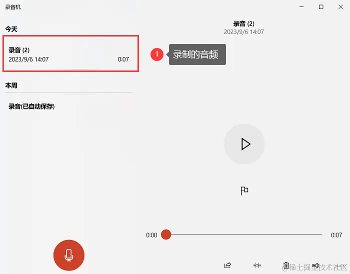 第2步:打开录音机应用后,点击“开始录音”按钮,就是屏幕中间的麦克风图标。