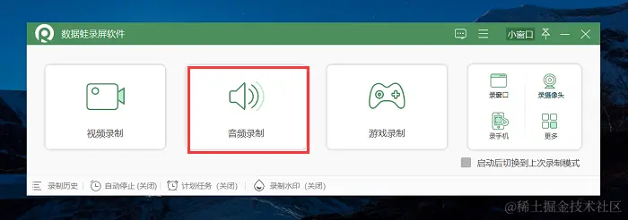 电脑录音机没有太多高级功能,适用于一些简单的录音任务。如果您想要进行更多录音操作,推荐使用数据蛙录屏软件,它是一款免费录音软件,拥有专业的音频录制模式,支持录制电脑内部声音与电脑外部声音。