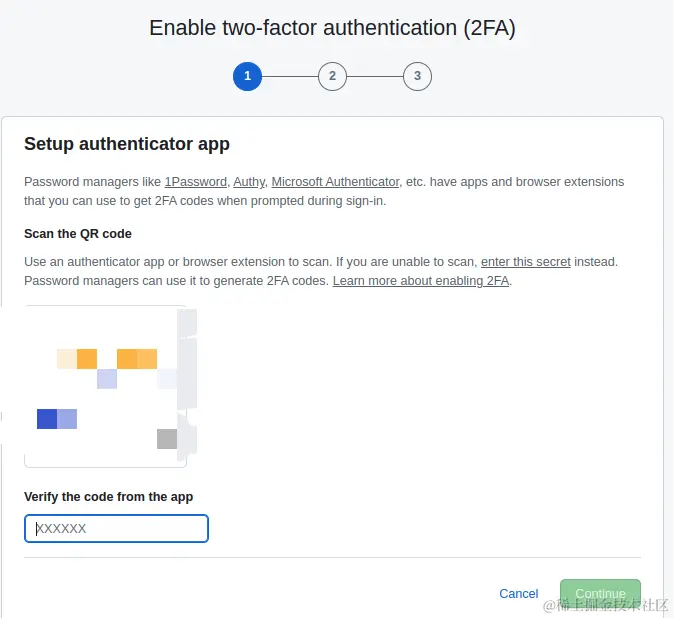扫码后,上面这些身份验证App,都会产生一个一次性密码,直接输入上图中的底部输入框,然后继续就完成了。