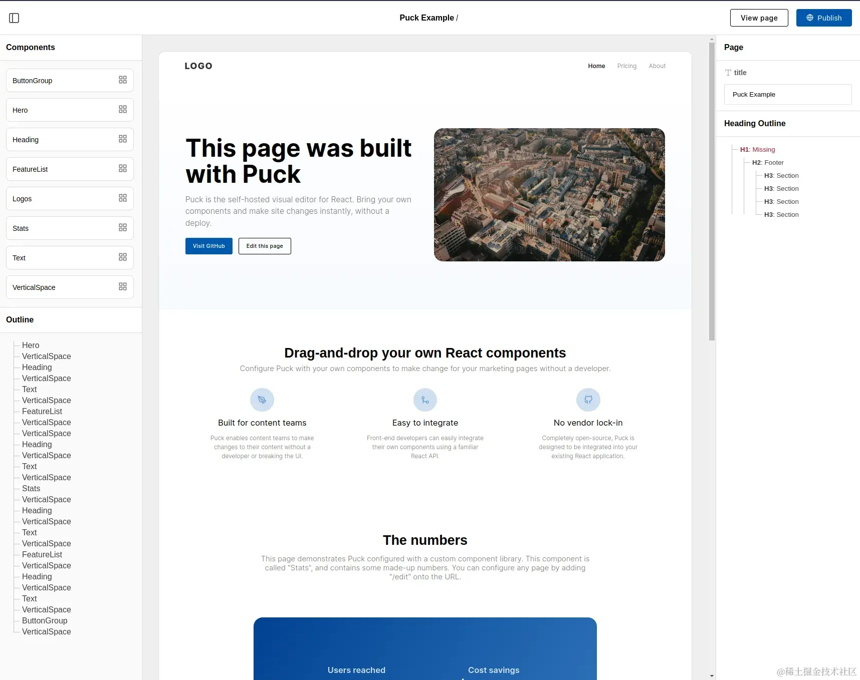 puck 是一个自托管的、可拖放编辑器,用于 React。