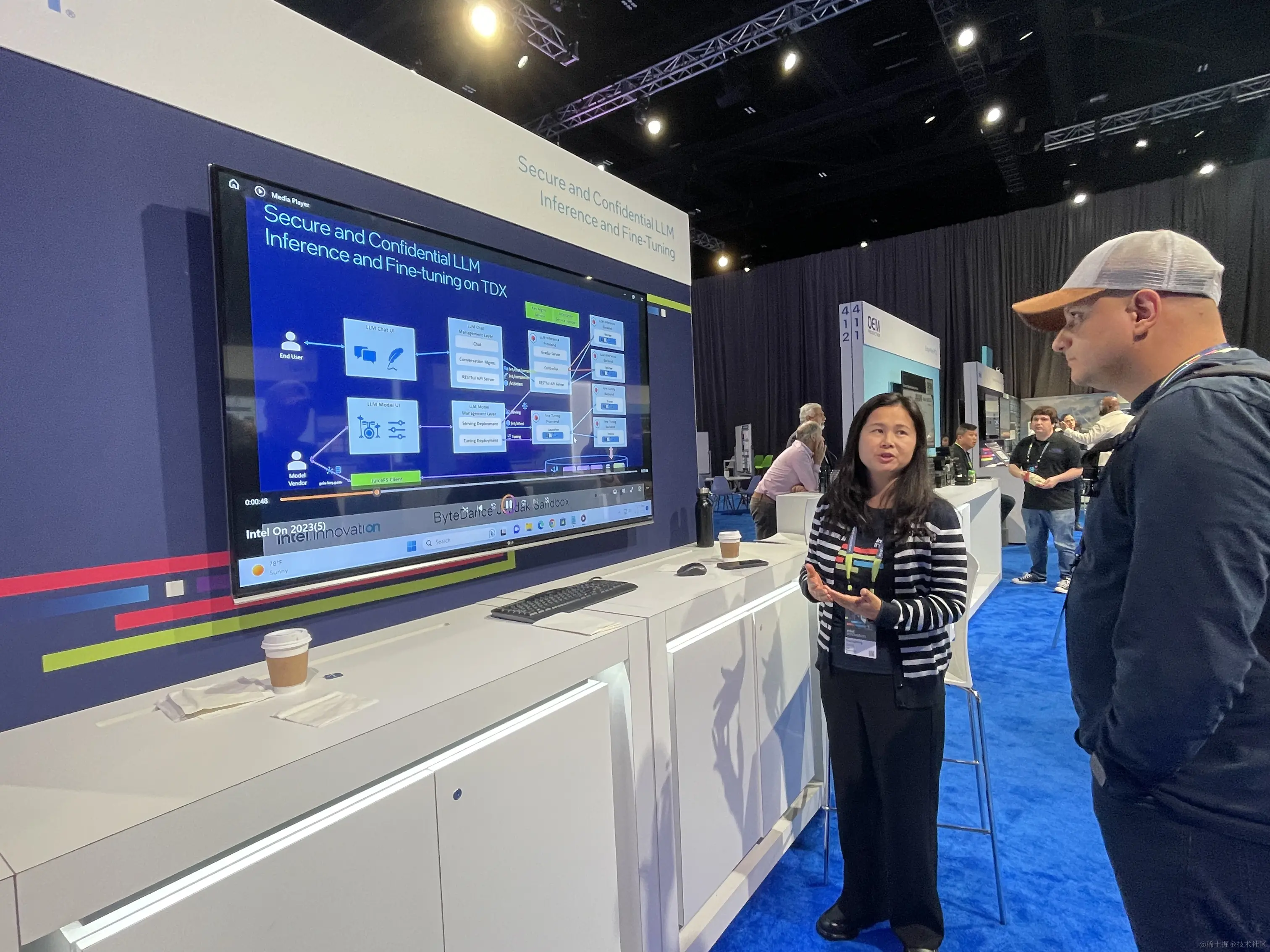在这次峰会上,字节跳动安全研究团队联合Intel BigDL、机密容器团队提出的面向大语言模型隐私安全领域的Jeddak数据安全沙箱(Jeddak Sandbox)Sandbox-LLM方案首次亮相,展现了大模型场景下模型部署、精调和推理过程的安全能力,并提供了用户可交互体验的原型系统演示。