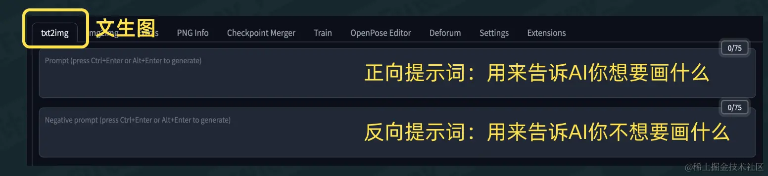 在 SD 里面,最基本的出图功能,就是“文生图”,而这里“文”指的提示词(Prompt)。