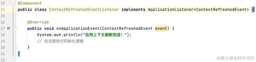 Spring内置事件:Spring框架本身也会触发一些内置事件,比如ContextRefreshedEvent(应用上下文刷新完成事件)和ContextClosedEvent(应用上下文关闭事件)等,你可以监听这些事件来执行相应的逻辑。