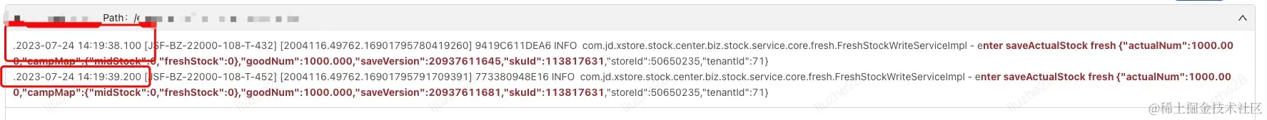初步排查,在同一时刻有两条请求进行写库存的操作。