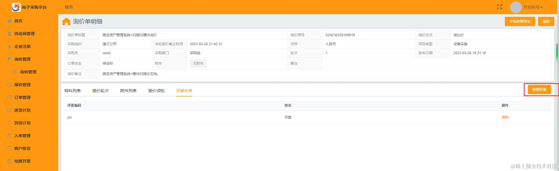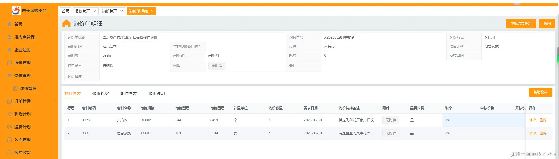 ☆ 询价管理: