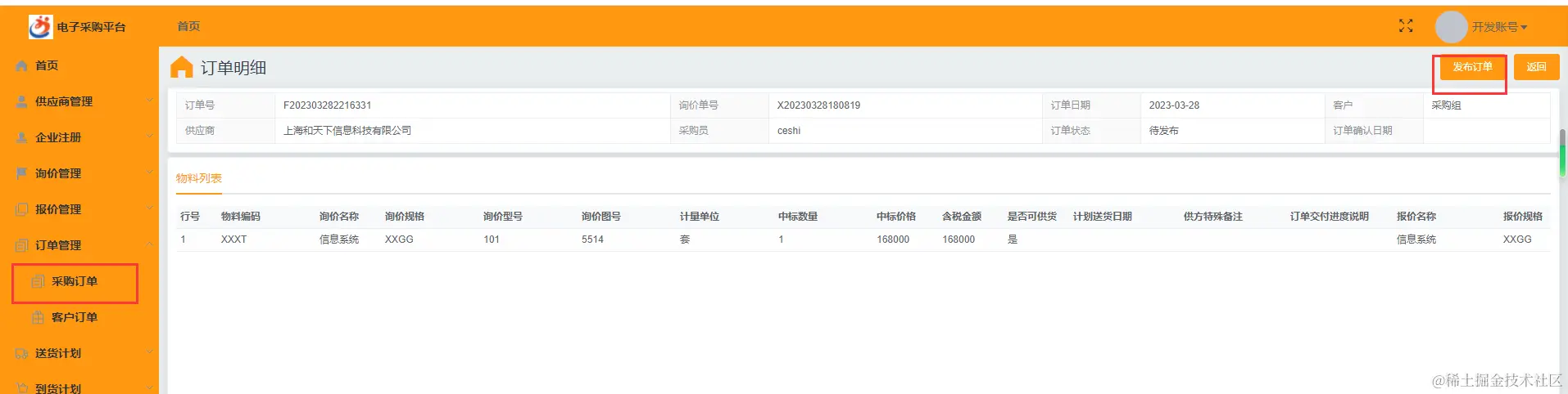 ☆ 发布订单,中标商收到订单