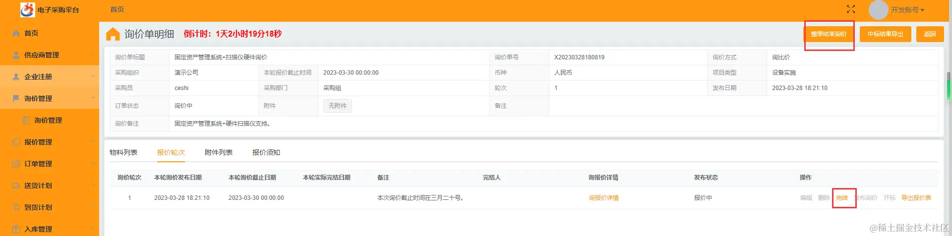 ☆本轮询价完结或者整单结束询价: