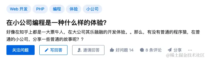 知乎上有一个提问:在小公司编程是一种什么样的体验?