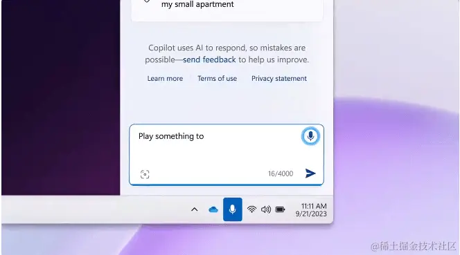 另外,在交互体验上,Windows中的Copilot可以让你通过语音或文本命令控制部分桌面体验,比如重新排列窗口,切换暗模式,启动播放列表等。与目前的“开始”菜单文本框相比,无疑是一个进步。
