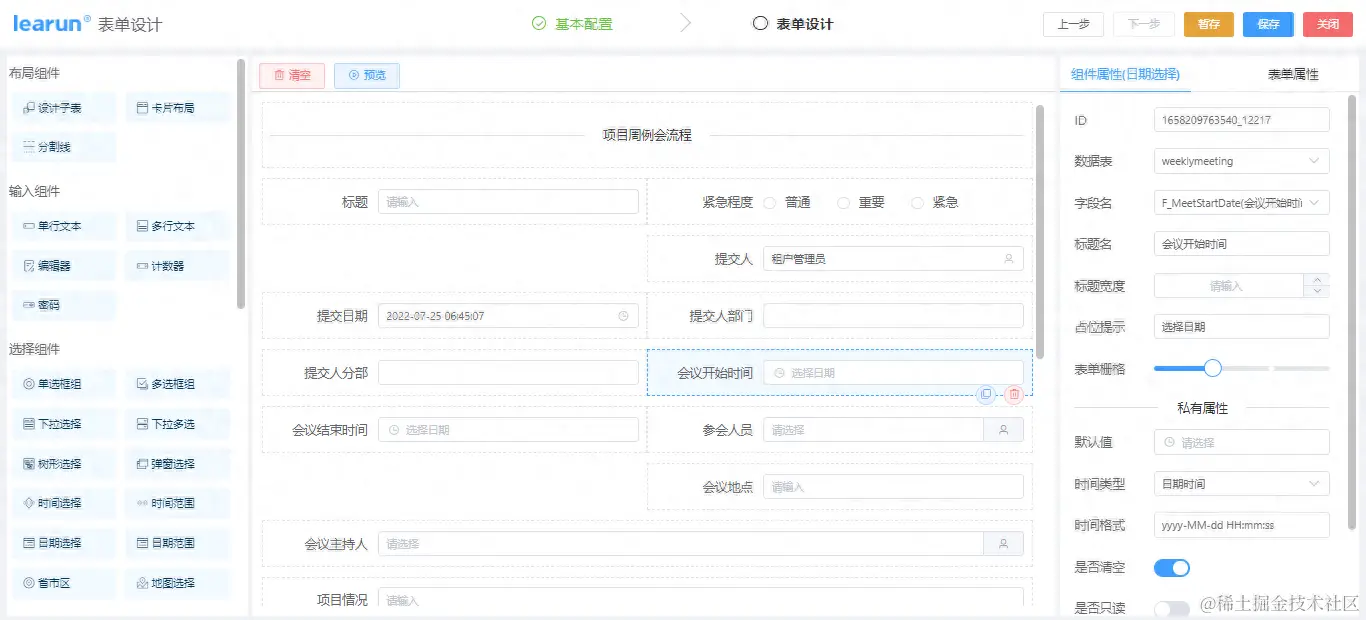 如图所示,LeaRun低代码开发界面由组件、画布、属性样式栏三部分组成。