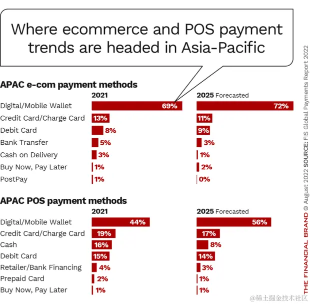 超级App利用数据、人工智能和云技术,满足用户多种场景需求,如中国的支付宝和微信,新加坡的Grab、印尼的Gojek和韩国的KakaoTalk,这种兼具多种功能和服务的超级应用在亚太地区的发展较为成熟,因此,数字钱包也在同一时期主导着亚太市场的支付“一哥”的位置(相对的,欧美地区的消费者并不喜欢依赖单一应用或来源来满足所有需求,一站式购物只是一种理想状态,以市场为基础的开放银行(open banking)是更符合欧美文化的金融新生态)。