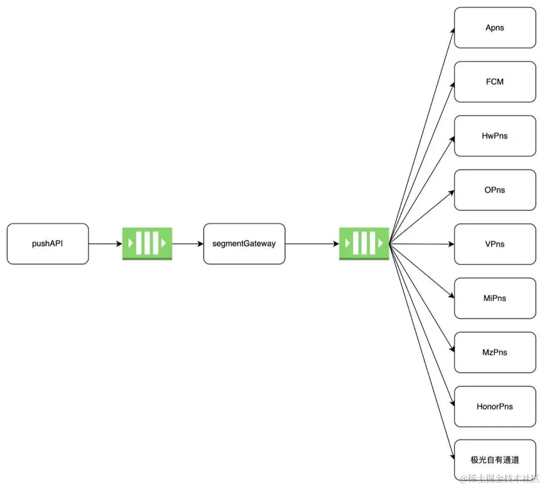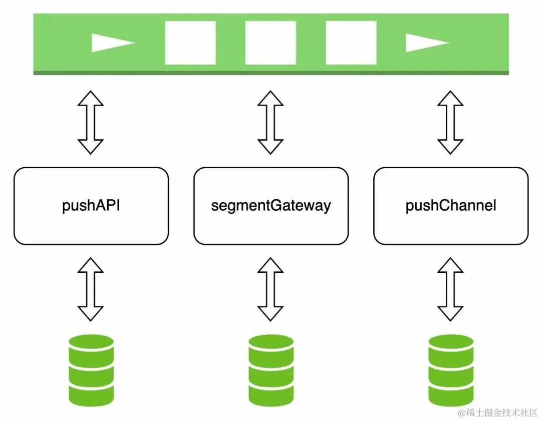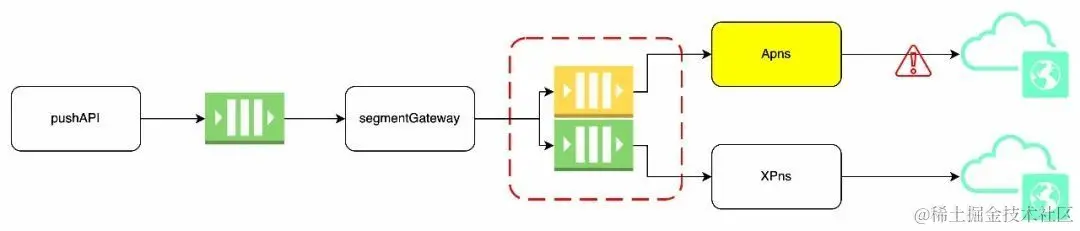 处理流程中涉及多个处理环节,各个环节的处理速度并不相同,甚至有可能有巨大的差异,例如某些推送通道处理快,某些通道推送处理相对慢。