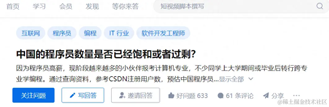 现在,在某论坛上面对于“中国程序员数量是否已经饱和或者过剩”这个话题很火!