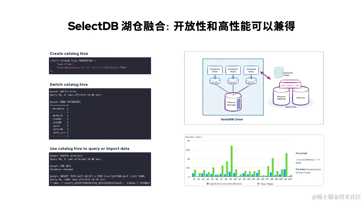 而以上两方面 SelectDB 都进行了大量的技术创新,以实现更加彻底的湖仓融合能力。