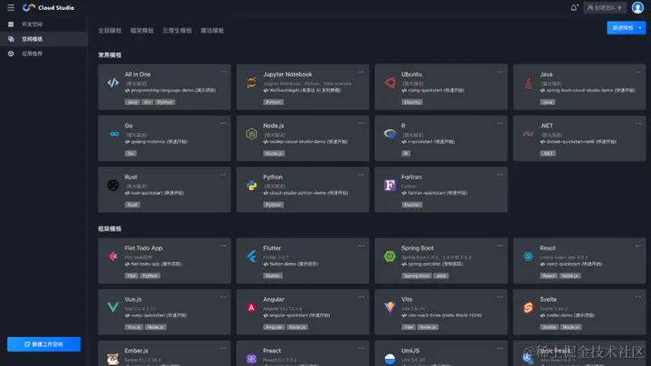 腾讯云 Cloud Studio 作为在线 IDE 同时拥有代码高亮、自动补全、Git 集成、终端等 IDE 的基础功能,同时支持实时调试、插件扩展等。内置了数十款的基础开发环境的模板库,包括所有必需的基础镜像,并预加载了默认设置、预置常用插件和开发配置,可以帮助开发者快速完成各种应用的开发、编译与部署工作。