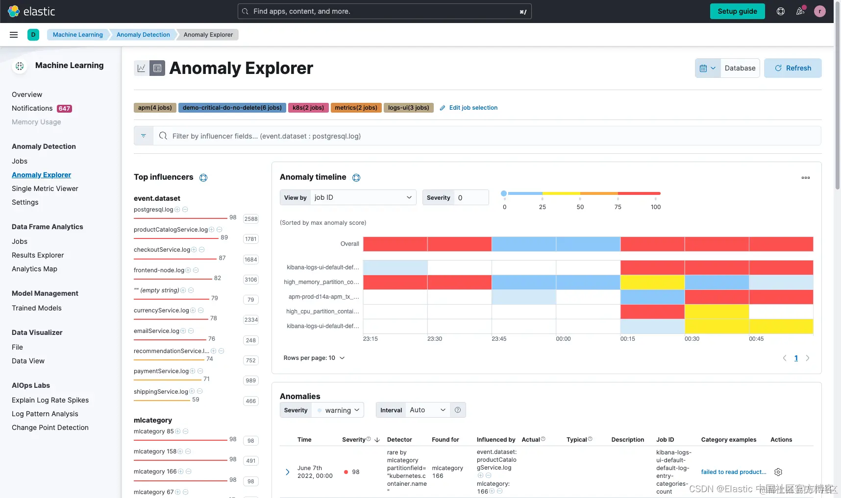 然后,机器学习可用于分析日志并识别通过手动分析可能不可见的模式。 机器学习可用于检测日志中的异常情况,例如异常流量或错误。 此外,日志分类功能等功能可以自动跟踪正在索引的日志数据类型并检测该模式的任何变化,这些功能可能很有用。 这可用于检测新的应用程序行为或你可能错过的其他有趣事件。