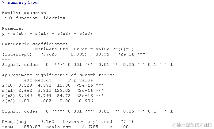mgcv提供了一个summary()方法,用来提取关于拟合GAM的信息。
