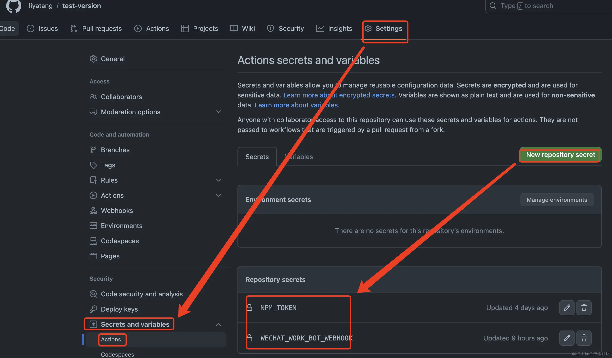 添加文件 .github/workflows/release.yml,内容参考 github.com/liyatang/te…。