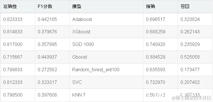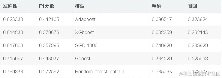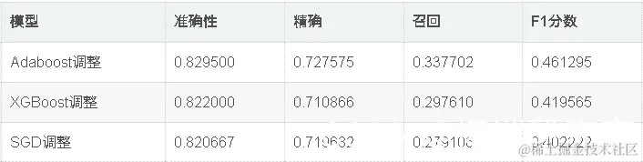 出色的所有指标参数准确性,F1分数精度,ROC,三个模型adaboost,XGBoost和SGD的召回率现已优化。此外,我们还可以尝试使用其他参数组合来查看是否会有进一步的改进。