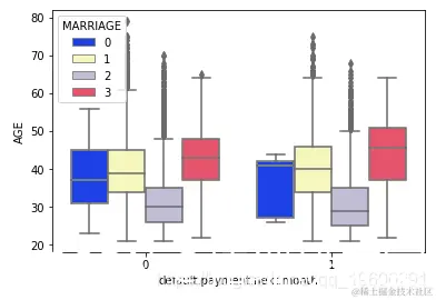 可以明显看出,那些拥有婚姻状况的人的已婚状态人的默认拖欠付款较少。
