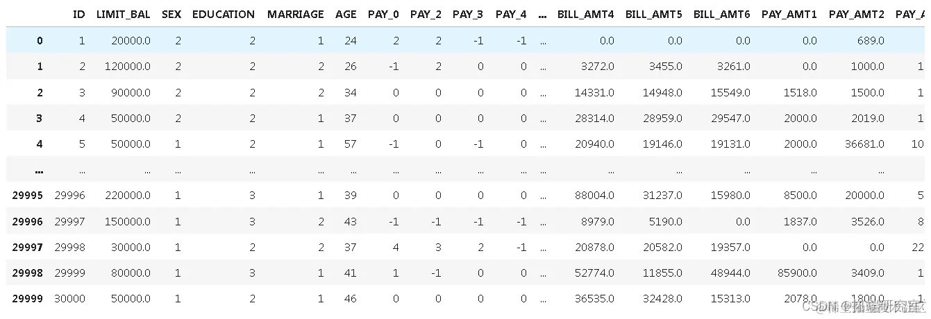7. PAY_0: 2005年9月的还款状态(-1 =正常付款,1 =延迟一个月的付款,2 =延迟两个月的付款,8 =延迟八个月的付款,9 =延迟9个月以上的付款)