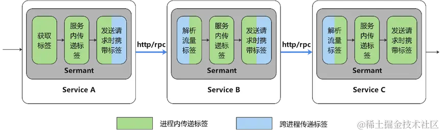 图 – Sermant中http/rpc请求的标签透传过程