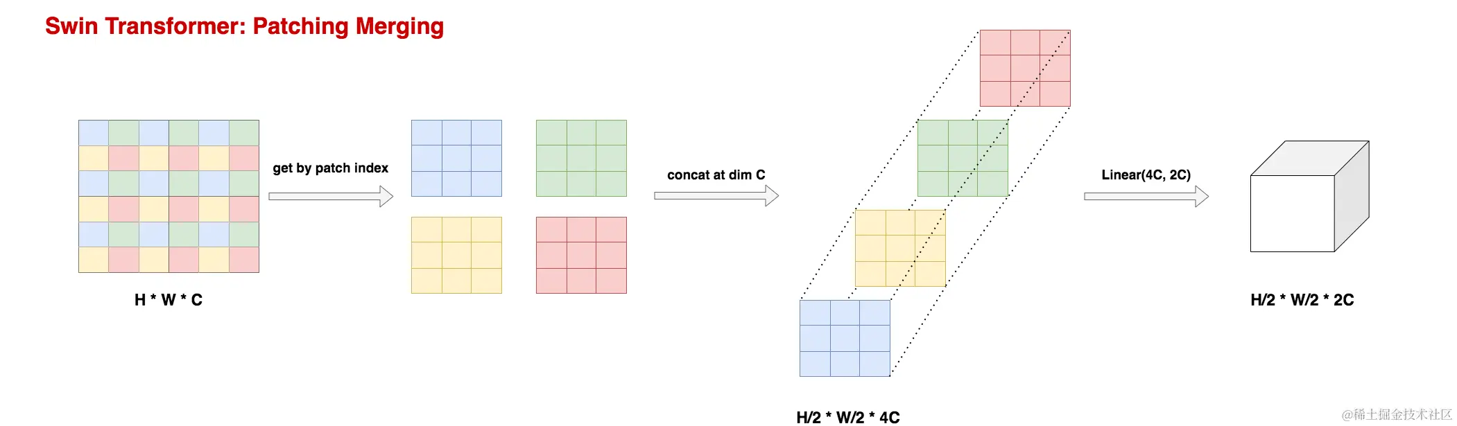 不难发现,其实patch merging就非常像CNN中的池化操作,只是这里将池化操作常用的min/max/average替换成了按固定位置取patch。