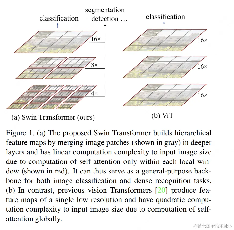 针对上述两点关于VIT的缺陷,Swin Transformer提出了如下改进: