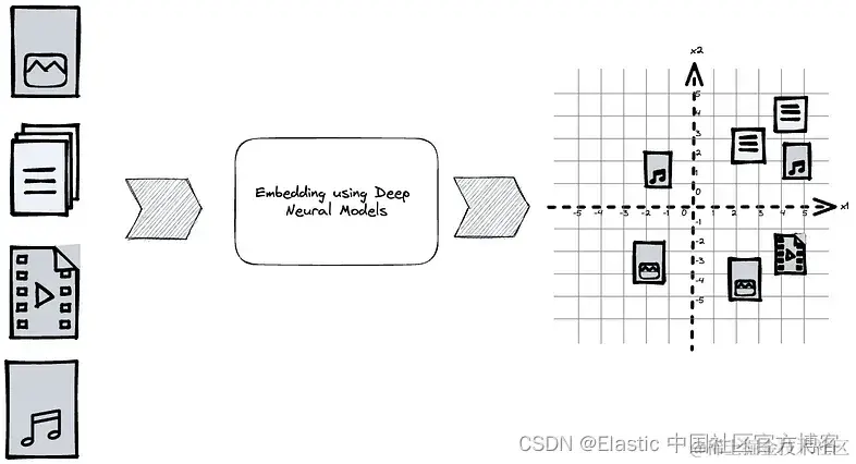 所以你在这里做到了并拥有有用的数据嵌入表示。 现在,你需要一种使用最近邻搜索 (nearest neighbor search),也称为 KNN,来搜索矢量数据的方法,并且你可以将令人兴奋的用例部署到生产中。