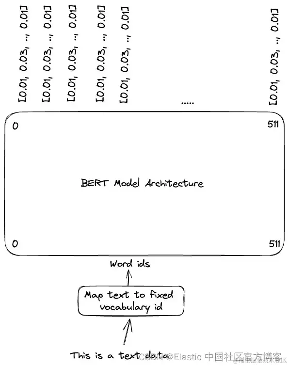BERT 模型最多可以取 512 个单词(输入上下文长度限制),网络输出是 512 个维度为 N 的向量,具体取决于 bert-base 模型的类型。 普通 BERT 模型使用 768 个维度。 对于 512 个单词的输入,我们获得一个 512 x 768 浮点数的矩阵,每个输入单词一个 768 维向量。 与之前的 NLP 模型架构(如 Word2vec)不同,输出上的每个词向量表示都通过 Transformer 架构中的注意力 (attention) 机制进行上下文化。 单个单词的向量表示取决于输入中的所有其他单词。