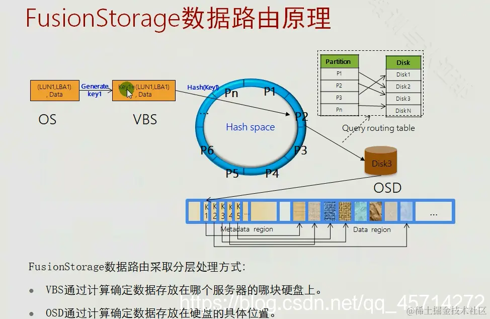 APP--OS--scsi/iscsi---VSC内核模块接收---scsi initiator--scsi target---VBP(LUN ID/LBA ID/length-->key data-->value)---client(key--hash--mod--patition--查io view--主OSD)---主OSD