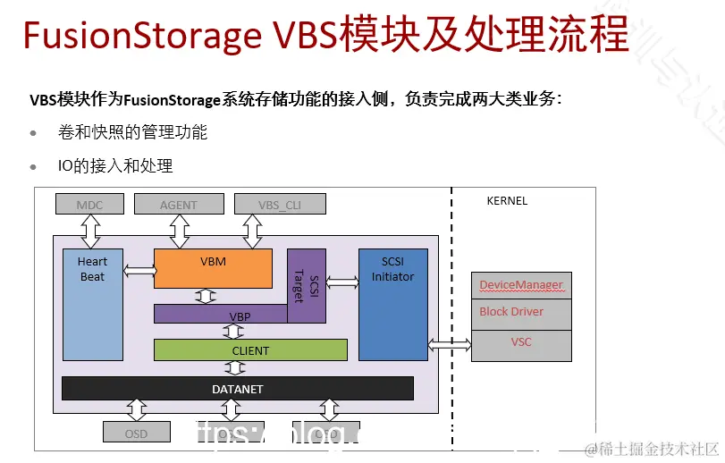 hearbeat:心跳模块 通过存储平面与MDC交互心跳包 使MDC维持VBS view状态视图