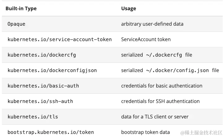 Secret 相比 ConfigMap 多了一个 Type 选项。