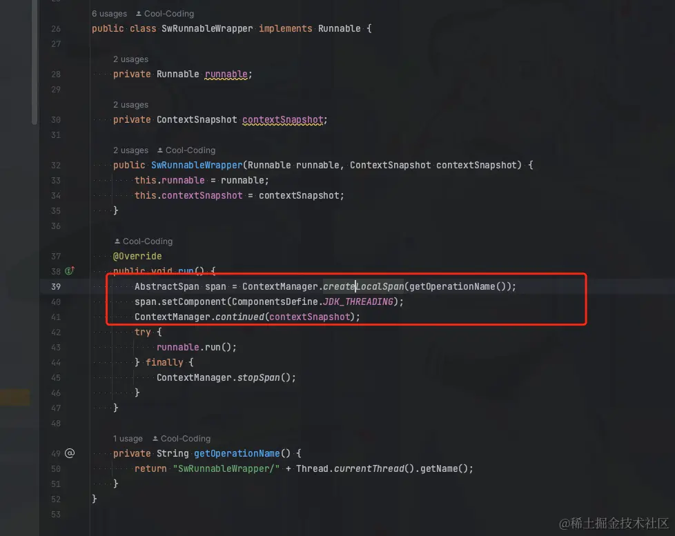 一方面这三个类的加载时机比较早,需要在 Runnable 接口及其实现类加载之前启动 Java Agent。总得来说直接增强Callable、Runnable、Supplier这个三个类是非常困难的,所以skywalking选择了新增三个包装类,而不是增强所有的Callable、Runnable、Supplier实现类