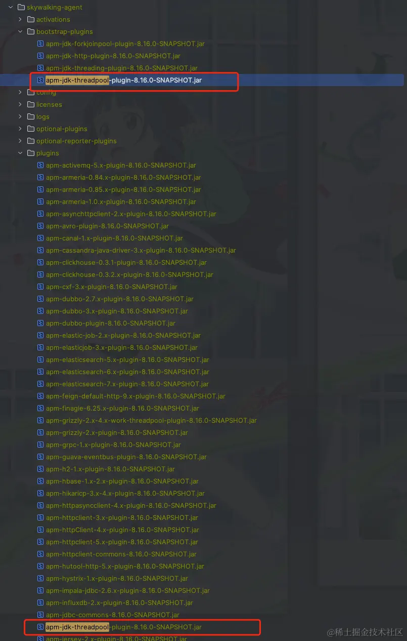 我们只需将bootstrap-plugins插件下面的apm-jdk-threadpool-plugin-8.16.0-SNAPSHOT.jar插件copy到plugins目录即可