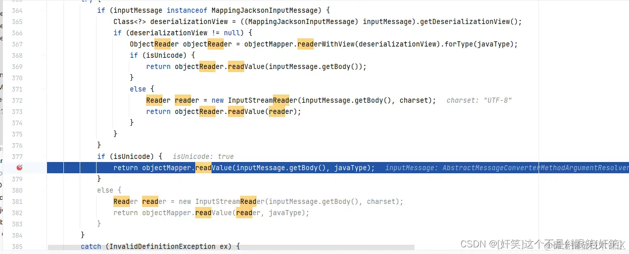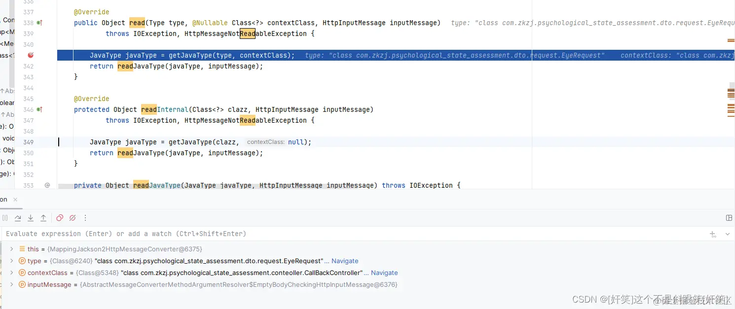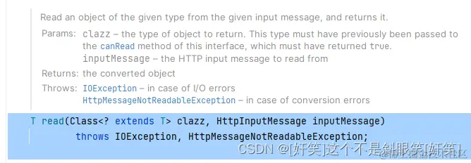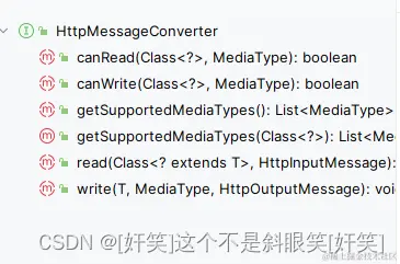 反复比对json的字段和java的字段,发现没有错误,debug源码,将断点打在log的那一行,首先,springmvc的请求数据统一由HttpMessageConverter这个接口处理,查看这个类的结构