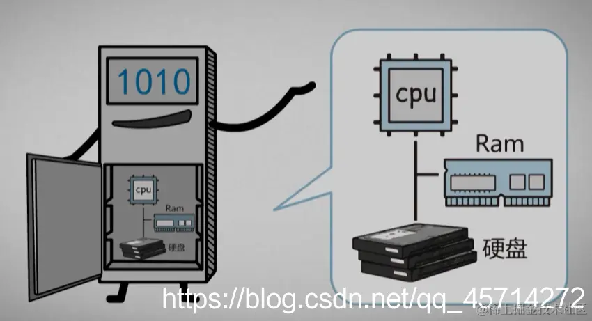要追述到电脑刚出来的时候,当时只有主机,人们在主机中构建了内部存储,也就是cpu+Ram+硬盘