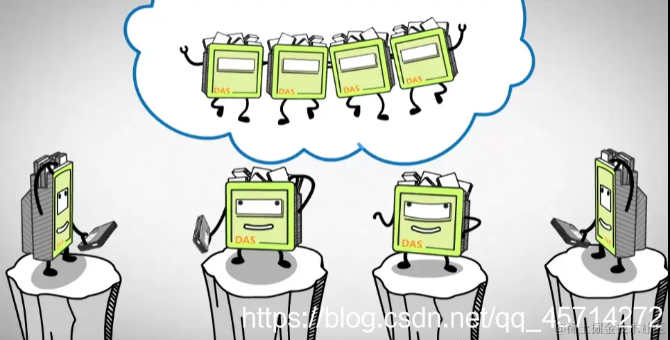 DAS虽然能解决中小企业的存储需求,但是各个DAS之间没有连接,数据之间不能相通!