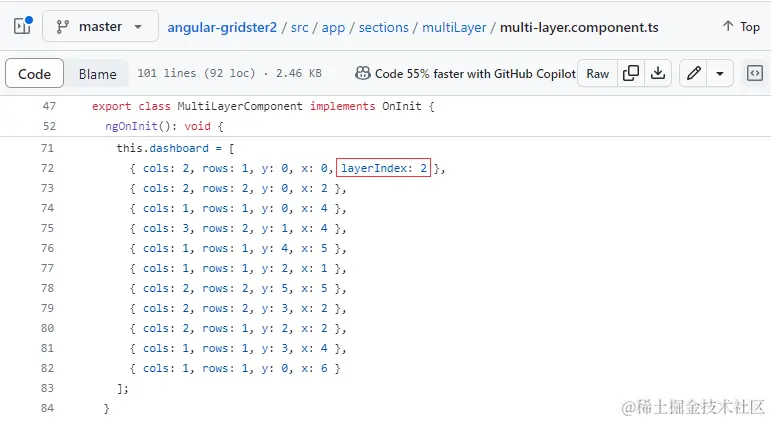 查看项目代码发现,该功能用到了网格布局插件:angular-gridster2,那么就查查看它的官网支不支持重叠功能了。