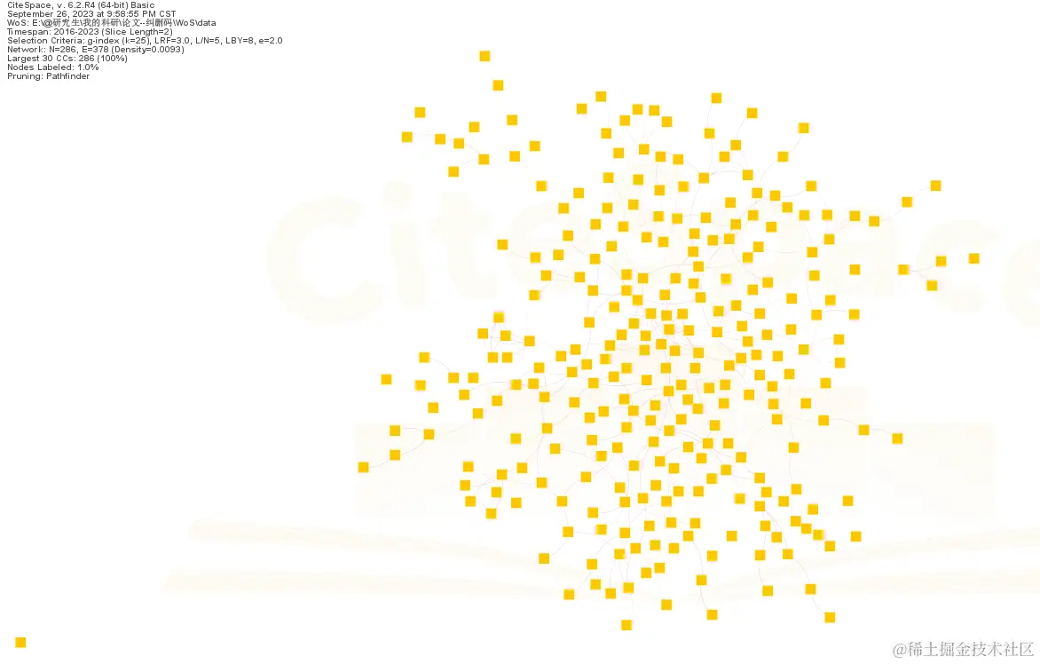 弹出一个不太好的显示,节点数超出显示的限制了,为了减少节点数,我将论文的时间缩减到2016年-2023年间,再次开始运行。