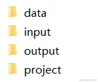 在数据进行分析时,有一个需要注意的点就是,有四个文件名,必须要按“data”、“input”、“output”、“project”四个文件夹命名(CiteSpace规定的),input文件夹用于数据的预处理,output文件夹用于后期数据的正式处理与保存工程文件,data文件夹用于数据的正式处理,project文件夹用于后期数据的正式处理和保存工程文件。