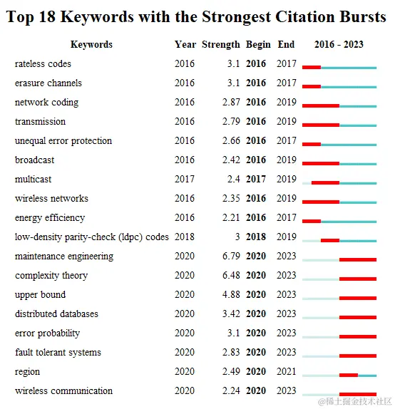 综上所述,通过Citespace软件对Web of Science上有关纠删码的论文进行探索性分析,我们深入了解了当前的研究热点和趋势。这些发现对于指导未来的研工作具有重要意义,并为解决实际问题提供了参考依据。