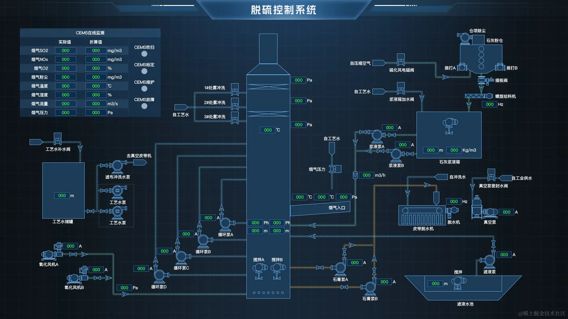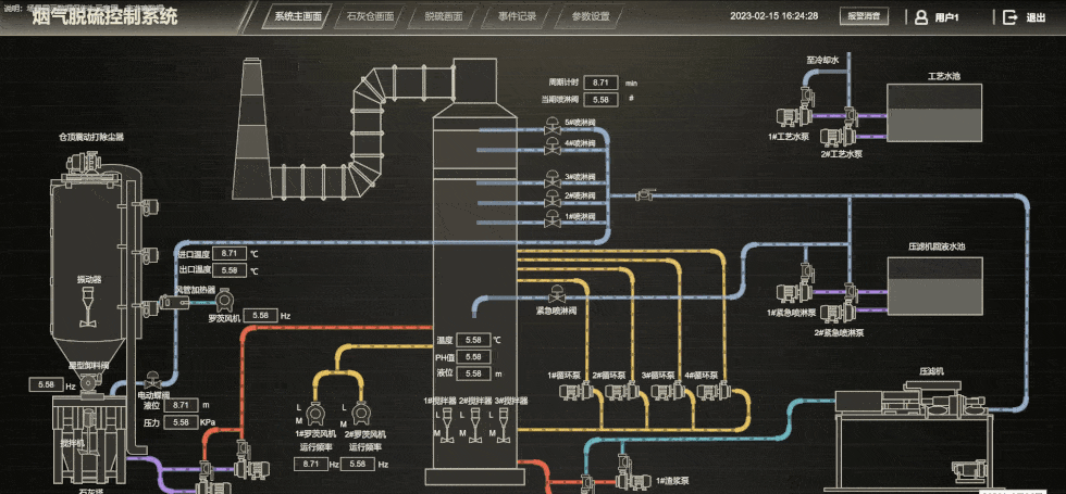 相较于 iFIX/WinCC 等传统组态软件产品,数维图基于 Web 的在线平台更适合 C/S 向 B/S 转型的大趋势,轻松的设计模式、丰富的可视化组件、快捷的数据绑定方式,可用于快速创建和部署。为各类工业场景提供 2D、3D 多种美观的可视化展示服务。管理人员通过监控和数据采集系统软件对整个系统进行监控和管理。可远程对脱硫系统进行启/停控制、对系统的正常运行进行监视和调整、对异常与事故工况进行处理。