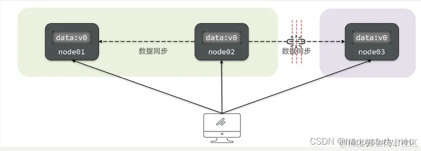 如果此时要保证可用性,就不能等待网络恢复,那node01、node02与node03之间就会出现数据不一致。